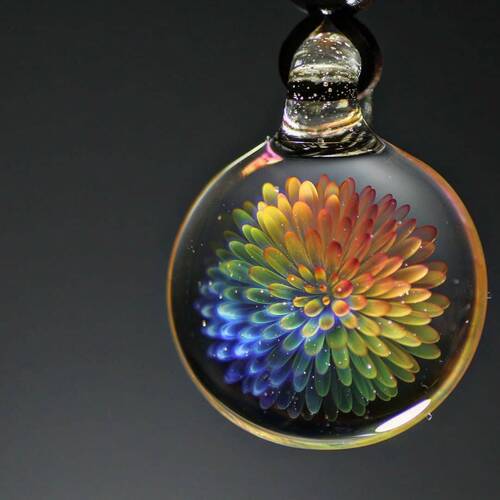 フューミングとは、金属を蒸発させ、その気体をガラス表面に付着(蒸着)させること。金属被膜を用いて発色させる方法で、金属被膜の厚みや背景の色によって色合いが変化するところがとても難しくおもしろいところでもあります。主に金や銀を使い発色させます。プラチナでも発色させれるみたいですが私はまだ試したことがありません。