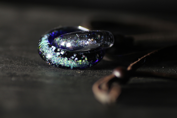 ガラスでチェーンは定番ですが、リング状はあまり見ないなと思い制作した作品で、ニッチですね。笑