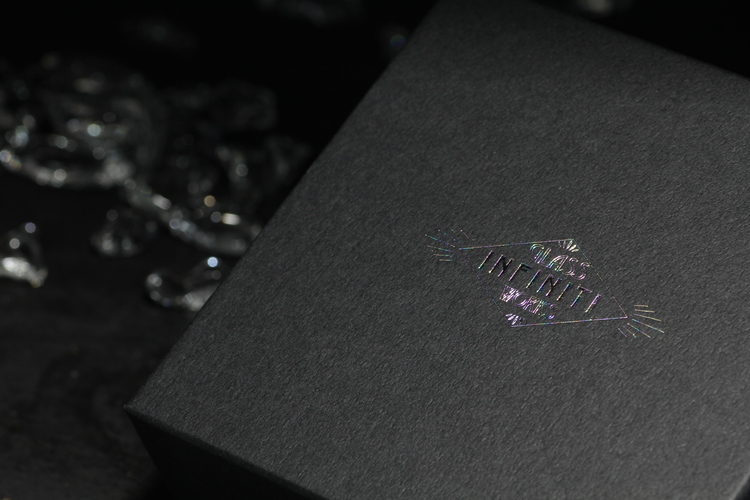 今回ギフトボックスを追加発注するにあたりロゴの箔押しを銀箔押しからレインボー箔押しにしてみました。