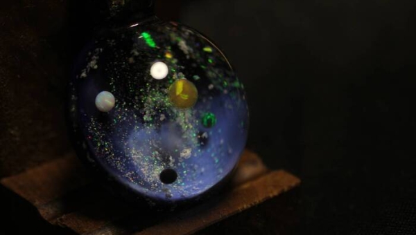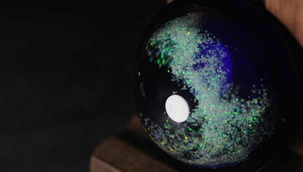 オーラ系の特徴でもあります色ガラスの中に強い光に当たると青白いモヤのような発色をするのが特徴...